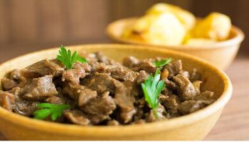 Boneless lamb or? Goat cooked mildly Spiced.